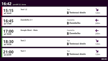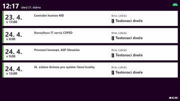 In the first case, you will launch the widget on screens that are at the entrance to a meeting room. Your visitors or conference attendees can see current and following schedule in the given room on the display. A screen with the same content can also be inside the room, of course.