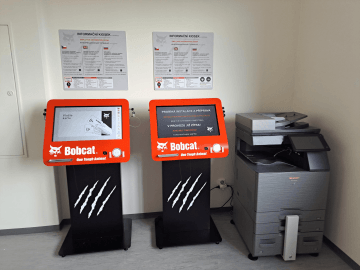 A world-renowned manufacturer of compact loaders and excavators, Doosan Bobcat has a large production facility located in Dobříš — approx. 60 km from Prague, Czech Republic. At Ki-Wi, we supplied 10 information kiosks with an advanced managing app for the Dobříš facility. These kiosks make it possible for employees to check their clocked hours and vacation days, update their personal data in company’s HR systems, and read important info about actual topics and events in the company.