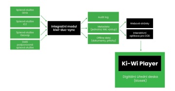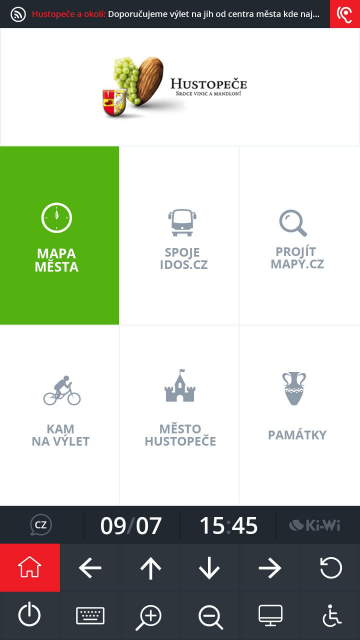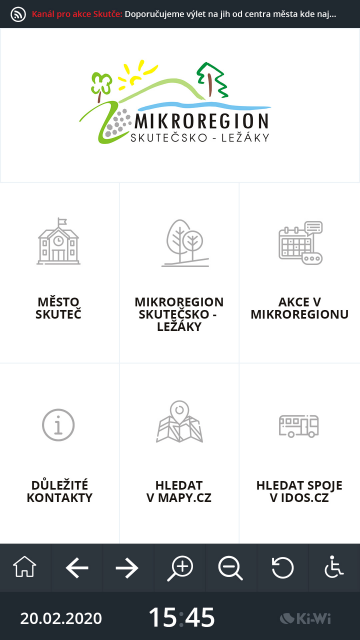 K úředním dokumentům přidává software Ki-Wi Signage i rozcestník pro rychlý přístup k jízdním řádům, mapám, počasí, kalendáři akcí, kultuře a sportu, kontaktům, galerii i textovým hlášením rozhlasu.