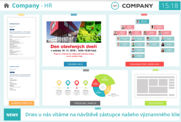 Rozložení nástěnky si nastavíte sami, nebo využijete předdefinované šablony (např. BOZP, HR, korporátní a další). Šablony pak snadno upravujete přesunem dlaždic.