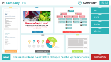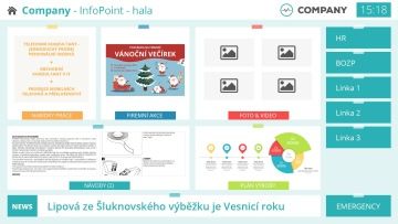 Digitální nástěnka INFOPOINT je ve všech směrech efektivnější. Ušetří vám čas, papír a budete mít jistotu, že se informace zavčas dostanou ke všem zaměstnancům. Nástěnku můžete promítat na libovolném množství displejů v celé firmě, a přesto ji pohodlně spravujete z jednoho systému.