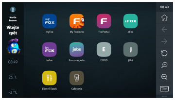 Foxconn CZ analyzed workplaces in both affiliates and decided to implement 16 information kiosks. They created a user interface consisting of several applications connected to intranet and cloud system for HR workers called SAP Success Factor.