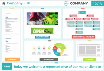Replace paper boards and printed documents with a single display. INFOPOINT saves money, time and paper. Every piece of information gets to all employees in time. Your digital notice board is displayed on all devices within your company — with you managing it comfortably from one place.
