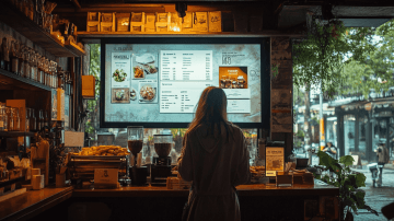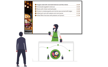 Marketa enters her favorite restaurant and is surprised by a large screen at the entrance displaying tempting photos of daily specials. At the table, the waiter greets her with an elegant tablet instead of a traditional menu.